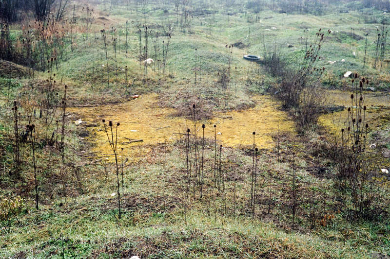 Ce qu’il photographie n’existe pas comme « objet » mais comme « sensation », comme « impression », comme « tremblement subjectif » dû aux vibrations émises par ce lieu. Ici la terre est à la fois vivante et fantomatique, abandonnée et malade, mystérieuse et angoissante, sublime mais inquiétante.