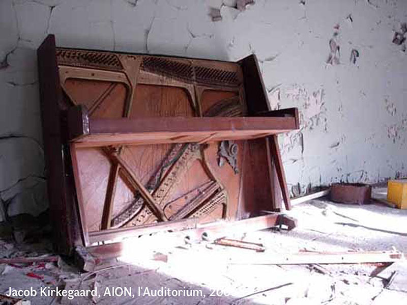 Ici, je propose de vous inviter à vous approcher de la démarche de l’artiste Jacob Kirkegaard, et de ses œuvres AION, réalisée à Tchernobyl en 2005, et STIGMA, réalisée à Fukushima en 2014, explorant par l‘image et le son cet intime invisible de l’après catastrophe, lequel nous dépasse et à la fois nous unit en notre destinée commune.