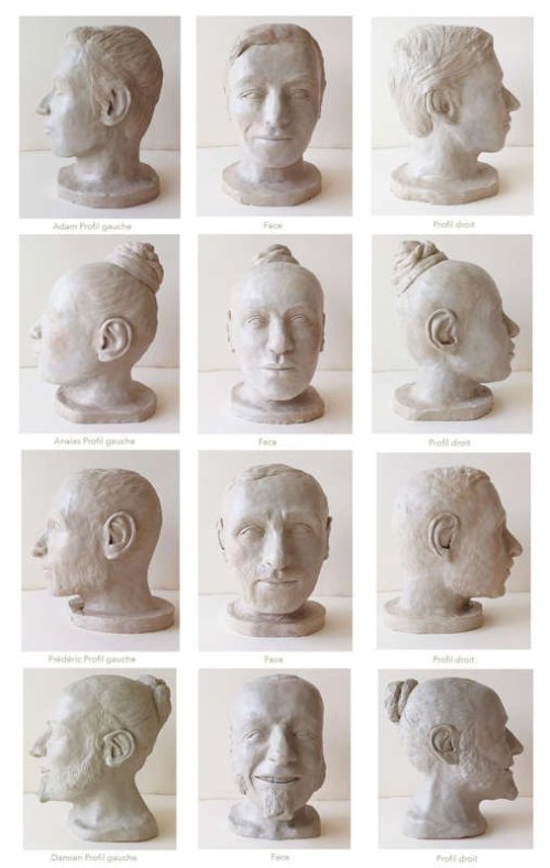 Ce type de questionnement appartient à cette époque où la conversion numérique est le fait de plusieurs générations qui n’en ont pas le même usage. Aussi, j’ai fait une investigation auprès de huit personnes appartenant chacune à une décennie différente, de 17 à 87 ans, pour relever comment cette révolution technologique s’est inscrite dans leur parcours. J’ai soumis le même questionnaire à tous [2]. Avec leur accord, j’ai pu les photographier, réaliser leur tête en ronde-bosse et enregistrer leurs entretiens.