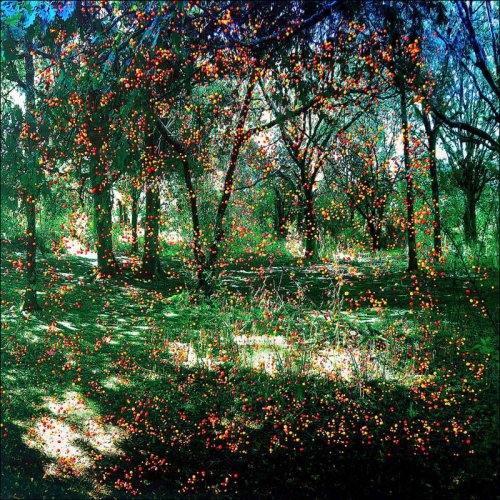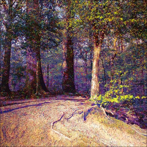 Ces points colorés évoquent à la fois la multitude des pixels de la photographie d’origine ainsi que les particules et corpuscules qui, à chaque instant, nous traversent et rappellent certains aspects de la physique quantique, notamment les concepts d’intrication reliant des particules à distance.