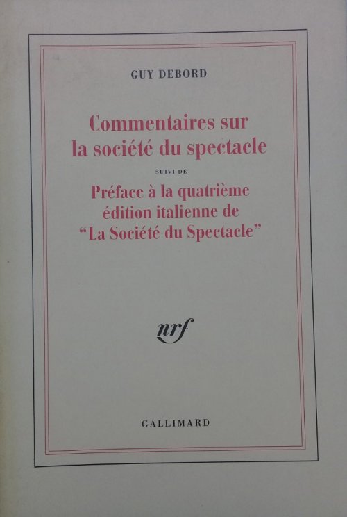 Le livre intitulé Commentaires sur la société du spectacle paru en 1988 aux éditions Gérard Lebovici peut être considéré comme l’une des rares tentatives de faire non seulement le portrait d’une époque mais de montrer en quoi et comment elle a changé en l’espace d’à peine vingt ou trente ans. Et si Debord peut le faire c’est bien sûr parce qu’il a écrit en 67 La société du spectacle.