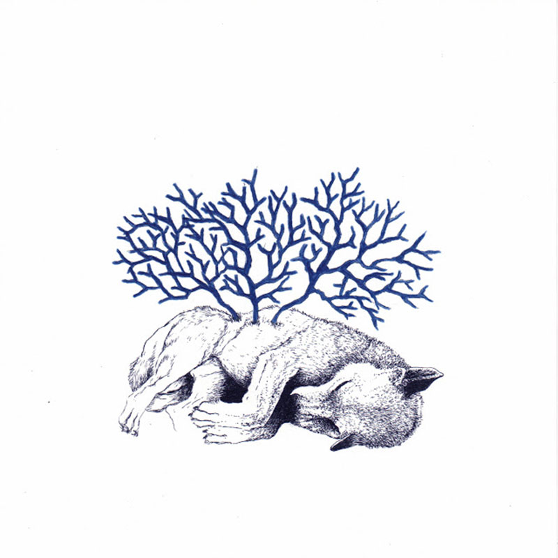 Mais quand la civilisation déclare la guerre aux pulsions, il lui arrive de découvrir que ses armes découlent des mêmes fibres qu’elle pourchasse chez ses proies. Mettre le feu à la forêt réveille à nos visions une similaire jouissance. Le plaisir que l’on prend à la traque s’imprègne d’une sensualité irrépressible, et quand les visages crispés par l’orgasme semblent l’être aussi par la douleur, le morbide donne envie qu’on le caresse. Dans les traditions chamaniques européennes, poursuivre un cerf magique permet d’aborder l’Autre monde : ce dernier, dans cette exposition, ne sera pas composé d’esprits oniriques mais du ravissement, et de son vertige. La forêt germe dans les entrailles et pousse, contamine le corps, envahit l’habitat, s’échappe en perforant le langage. La nature s’écoule de nos membres pour se fondre avec la vie sauvage, elle devient un masque enrobant notre regard pour mieux le recentrer vers le cri originel de l’intérieur. Des tiges en bois naissent de ce masque. Le chasseur civilisé s’est transformé en animal, en loup ou encore en aigle, en arbre aussi.