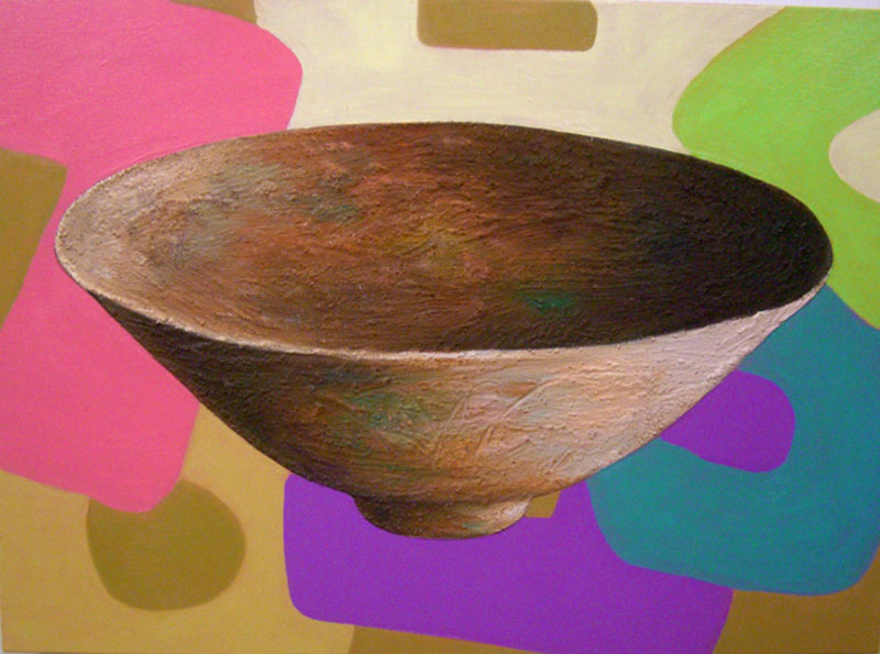 À l’époque de ses débuts, il a peint sur de grandes toiles des objets du quotidien, des coupes pour boire le thé ou l’alcool par exemple, mais aussi des pots. Éléments bien connus et présents partout dans le quotidien des coréens, même de ceux qui habitent dans les grandes villes modernes, ces objets ont très tôt été associés à un fond coloré. Ce fond ne resta pas longtemps uniforme, car il était aussi dans ces tableaux anciens, le lieu de l’apparition, et de la manifestation des lettres.