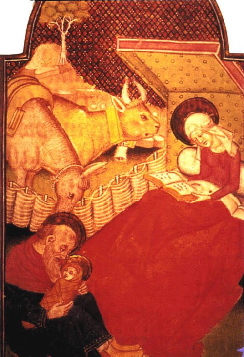Marie a épousé Joseph, confiant et rassuré ; heureux près d’elle, il s’efforçait de satisfaire ses envies, de calmer ses angoisses, de soulager ses fatigues. Sentant les petits coups de poing ou de pied du fœtus dans son ventre, elle disait : « Regarde, Joseph, il bouge », et il posait sa grosse main sur elle et était ravi. Enceinte, elle a eu des nausées et des cernes sous les yeux ; les derniers mois, elle a été fatiguée. Elle a accouché dans la douleur avec l’aide des sage-femmes.