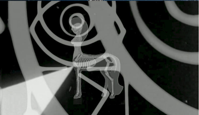 Ils portent l’estomac dans leur corps chevalin. Car les chevaux sont des animaux prompts à fuir : estomacs et intestins fugitifs. Ainsi le thorax humain et le milieu du corps sont-ils disponibles pour le souffle. Mais les deux corps peuplés de colonies d’esprit et de nerfs comme d’une flore intestinale. Une cohésion précaire. D’où l’ivrognerie et l’addiction aux drogues, pour que le cerveau „joue“ dans ses colonies. À l’emplacement du diaphragme chez les humains se trouve chez Chiron l’estomac aux drogues. Là où se situe le cœur des chevaux au galop, se trouve chez le centaure le MAELSTRÖM DES SUBSISTANCES MATÉRIELLES. Or la racine d’immortalité de Chiron réside dans cette partie inférieure du corps. De ce point de vue, les organes d’un centaure ne sont pas comparables à un convoi ferroviaire composé par exemple d’une locomotive tirant des wagons sur des rails fixes, bien au contraire : ils constituent une unité aterrestre. J’appellerais volontiers le corps chevalin et l’esprit pérégrin du centaure son soleil. L’aire sexuelle contiguë à l’appareil digestif caché à l’intérieur du cheval, je l’appellerai lune. Télépathie à travers toutes les fibres de cet être perpétuellement excité et de ce régime néanmoins tranquille régnant dans le chef de Chiron. Ce que souligne déjà Hérodote. Les centaures n’ont pas d’anus et ne connaissent pas d’excrétions. La chose digérée s’exhale à travers la peau et le poil. À supposer qu’une parcelle de ce qu’ils ingèrent comme matière (et pas seulement le contenu de leurs outres) conserve quelque choséité, puisque les centaures plutôt complexes, tel Chiron, ne connaissent (selon Plotin) aucun dualisme entre esprit et matière. TOUT EST SPIRITUEL. D’où la difficulté pour l’anatomiste, comme le remarque déjà Avicenne, d’appréhender l’essentiel lorsqu’on découpe le corps d’un centaure mort.