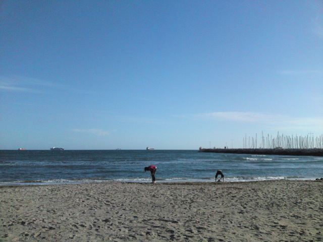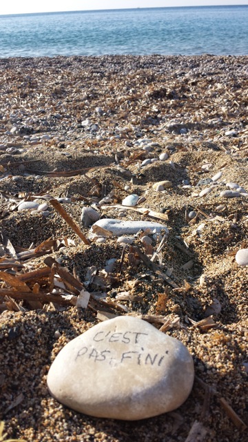 Personne sur la petite plage, quelques bateaux plus loin échoués sur le sable, d’autres encore à flot accrochés à leurs bouées jaunes ou oranges.