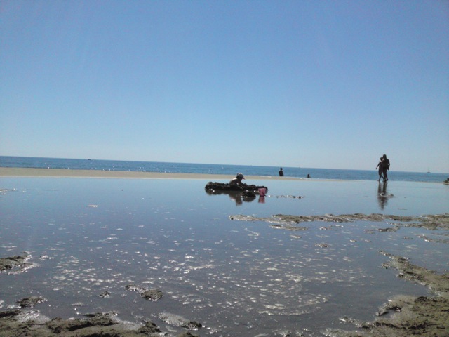 Ça brille. De la lumière vivante qui surgit du sable. La mer sous le sable, toujours dans le sable, présente par son absence temporaire. Contre la montre, le ressac.