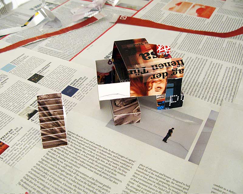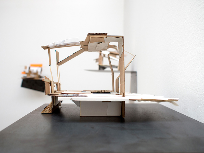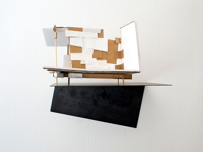 Inhabitables parce qu’elles ne sont pas pensées pour pouvoir l’être, ces maquettes abandonnées et ces architectures non fonctionnelles mettent en scène une sorte de vision imaginaire sur le réseau de textures, nerfs, os, veines et autres éléments, qui permettent à un bâtiment de tenir. Réalisées dans une sorte de détachement par rapport aux préoccupations de l’architecture même, c’est comme si elles nous permettaient au moyen d’un détour par l’imaginaire, de pénétrer ou, si l’on préfère, de découvrir son envers.