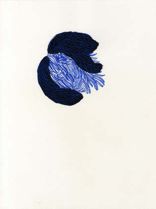 Ses dessins, eux, sont avant tout l’œuvre d’une plasticienne, entendons qu’elle se livre alors à des gestes qui ne sont pas guidés par un besoin de signification mais mus par la seule puissance d’inscription du mouvement de la main. Ce geste est multiple. Il se déploie selon un processus à la fois constant et éternellement variable.