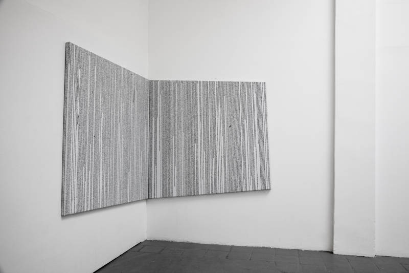 Nel togliere la semantica alla scrittura, nei rotoli, riflessi di arcaici cartigli e papiri, la ‘iscrizione’ ininterrotta, nel suo lineare sviluppo virtualmente infinito, ‘racconta’ il silenzio del mondo storico.