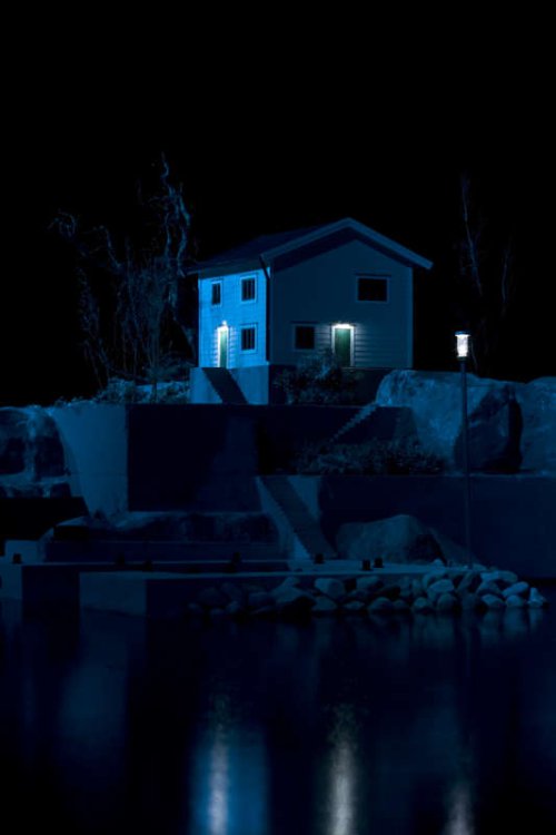 C’est que, comme c’est souvent le cas dans les œuvres photographiques trouvant leur place dans le champ de l’art contemporain, ce qu’il cherche à appréhender se trouve moins dans le présent que dans les formes irréductibles du passé. La série encore en cours aujourd’hui, intitulée Archipelago, met en scène à l’échelle 1/40 des maisons de pêcheurs dans des îles d’un archipel fictif typique de la Baltique. Nous voyons donc non seulement des maquettes mais des stéréotypes, ou plus exactement des mises en scènes en modèle réduit d’éléments issus de la mémoire collective et peu ou plus accessibles aujourd’hui parce que n’existant plus ou n’étant plus habités réellement.