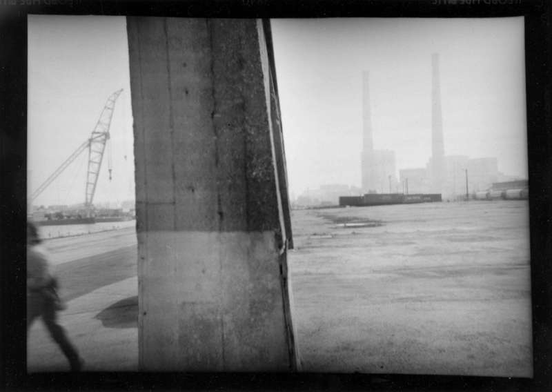 Il nous invite à dépasser l’inévitable ambiguïté qu’une telle production d’images suppose entre la part documentaire et la part esthétique. Il refuse tous les artifices de la pratique photographique. Fidèle utilisateur d’appareils rudimentaires « Box », « Polaroïd » ou comme pour cette série havraise une « Scoutbox Lumière », Yannick Vigouroux a planté son camp du côté de la photographie en prise directe sans jamais trafiquer a posteriori le cadrage de ses prises de vues :