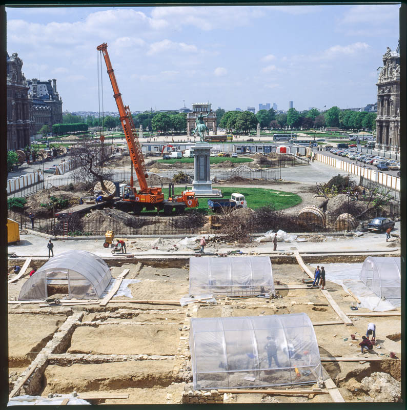 Ici une pyramide émergeant des profondeurs de la terre. Là, les salons Napoléon III en chantier, révélant à nos yeux incrédules, non plus une proximité de hasard entre dehors et dedans, mais une similitude d’état, une parenté d’existence.
