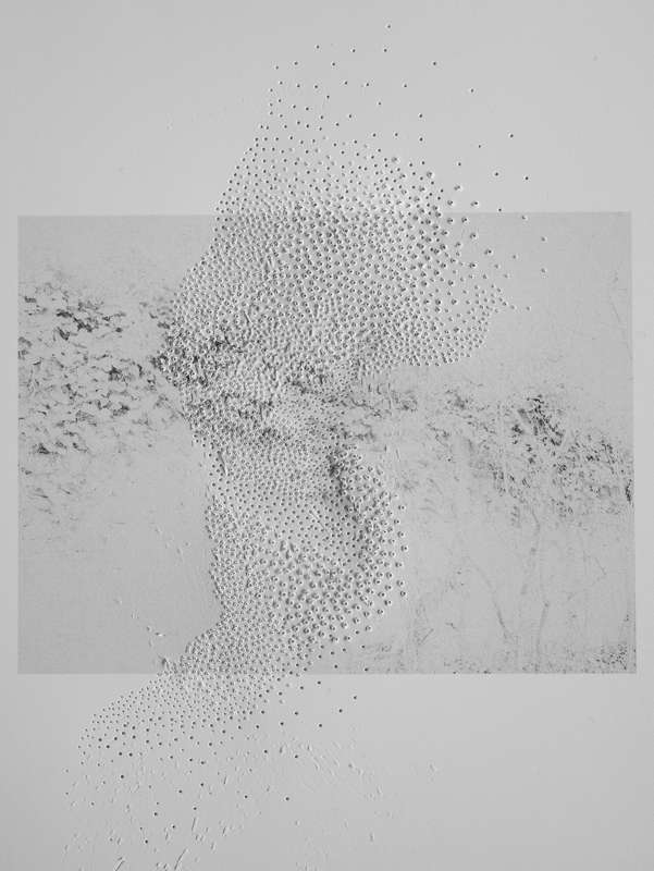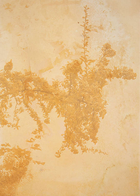 Image d’ouverture : Le bruissement entre les murs, impression jet d’encre pigmentaire sur Papier Arches BFK Rives+ dépôt de pigments de fleurs par martelage, Tirage nu 15x11 cm, 2023