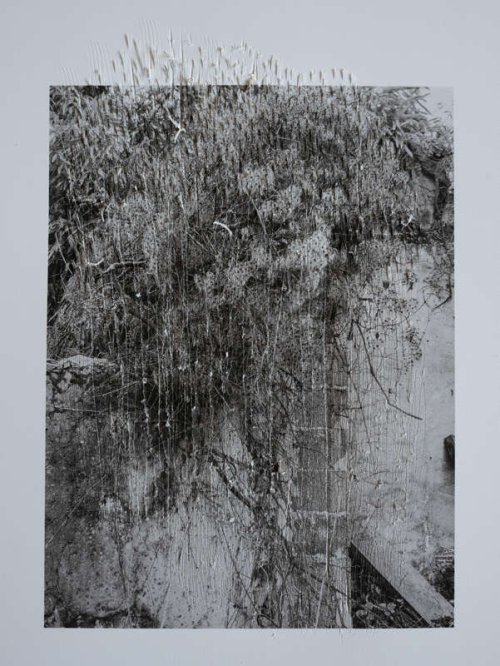 Le Bruissement entre les murs se déploie sous de multiples formes : expositions, installations, séries, œuvres uniques. Le livre sera un des rhizomes du projet, conçu comme un corps vivant, circulant de mains en mains. La prolifération d’éléments composites produit un jardin d’images en mouvement — mixant des images fixées et éphémères, insaisissables, épiphaniques. Cette vitalité de la création faisant écho à la prolifération végétale.