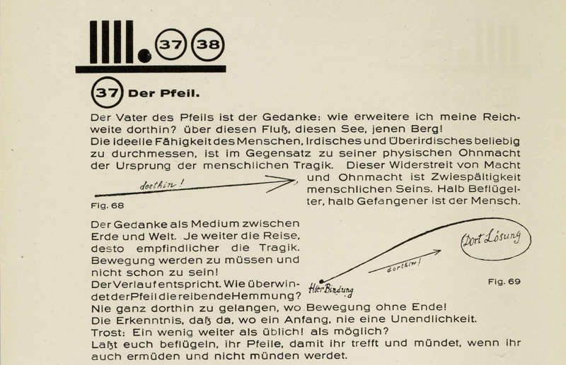 „Der Weg ist wesentlich und bestimmt den einmal abzuschliessenden und einmal abgeschlossenen Charakter des Werkes. Die Formung bestimmt die Form und steht daher über ihr. Form ist also nirgends und niemals als Erledigung, als Resultat, als Ende zu betrachten, sondern als Genesis, als Werden, als Wesen. Gut ist Formung. Schlecht ist Form ; Form ist Ende ist Tod. Formung ist Bewegung ist Tat. Formung ist Leben.“