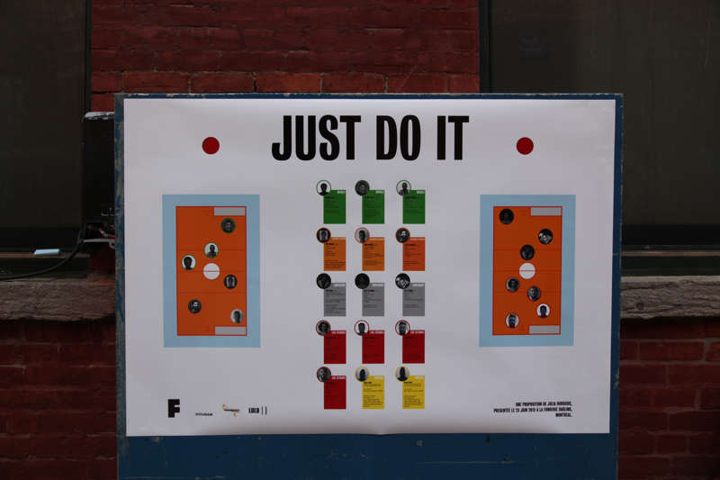 Just do it était le titre de cette œuvre au moment de la représentation à la fonderie Darling à Montréal.