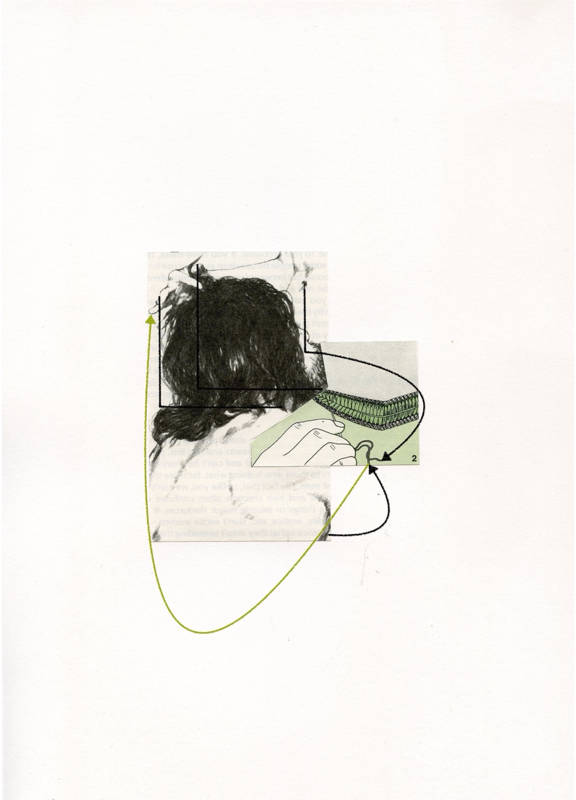 Dans son texte Drawing as Discovery [1], John Berger écrit : « C’est l’acte même de dessiner qui oblige l’artiste à regarder l’objet devant lui, à le disséquer dans l’œil de son esprit, puis à le reconstituer. » Cette idée de dissection est centrale dans mon travail de dessin et de collage. Je coupe, j’édite, j’assemble et je trace des lignes afin de produire un nouvel ensemble. Ce processus me permet d’établir des connexions formelles et linéaires entre des sources multiples, donnant lieu à une nouvelle proposition graphique.