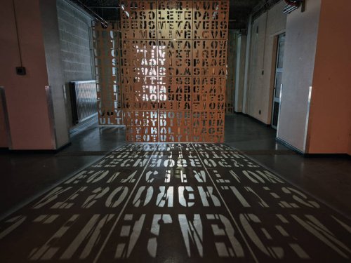 C’est à la Fabrique de Théâtre que sont rassemblées la plupart des créations qui ont toutes une relation aux techniques ou technologies, et plus globalement aux cultures numériques. A l’entrée de l’exposition, l’installation typographique La Fin de l’écriture signée Pascal Dombis inclut une séquence vidéo et générative. Ce dernier, par le passé, a déjà anticipé d’autres fins, comme celle de l’art. Toutes les créations humaines sont possiblement porteuses de leurs propres fins, et il en a été ainsi de civilisations entières. D’autre part, en passant du manuscrit au clavier, puis à la générativité, l’écriture n’aurait-elle pas perdu une partie de son aura ? À moins de considérer que les mots ont vaincu les images, tout au moins celles qu’ils permettent de générer à l’aide de prompts. D’ailleurs, l’artiste n’exclut pas que l’écriture, qui n’a cessé d’évoluer au rythme des innovations techniques et autres évolutions sociétales, puisse se métamorphoser. Et si tel était le cas, nous n’en serions qu’au début.