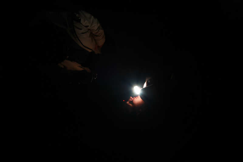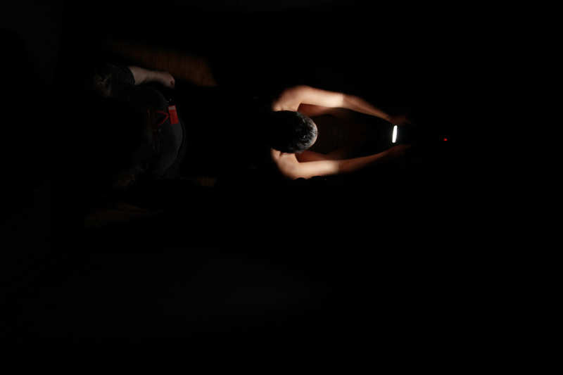Parce que, malgré tout, il y a quelque chose à voir dans cette boîte noire. Et évidemment, Mélanie Peduzzi a bien compris qu’il était à la fois inévitable et drôle de jouer avec ce qui peut passer pour un cliché mais qui constitue en fait une trame profonde de notre psychisme, à savoir la nudité et avec elle l’ensemble des paramètres de ce que l’on pourrait appeler la scène originelle, celle du rapport sexuel dont chacun est issu. Car il n’y a qu’un pas entre la présence d’une femme nue dans une chambre noire qui se dévoile, se révèle dans l’instant d’un aveuglement. Oui, ici, nous avons affaire à une sorte de concentration maximale de l’ensemble des paramètres qui lient dans notre imaginaire l’inconnaissable avec le visible, l’aveuglement avec la révélation, le vrai avec l’insupportable et le beau avec l’insoutenable. Cette fois nous ne voyons pas par le trou de la serrure, nous avons fait un pas de plus mais, étant dans le noir, nous sommes à la fois les acteurs et les témoins de cette scène originelle dont nous nous approchons donc d’une manière inédite.