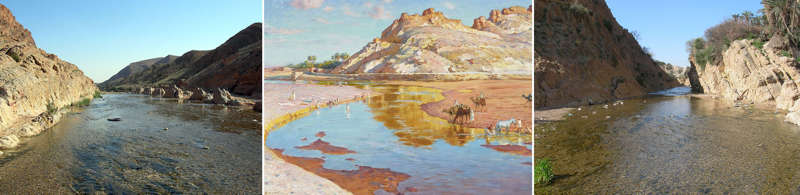 En poursuivant ma route, je vous présente ce paysage peint dans l’oued M’zi de Dinet en 1890 que j’ai photographié à l’exposition à l’Institut du Monde Arabe en 2024 et une photographie de moi de cette année 2007.