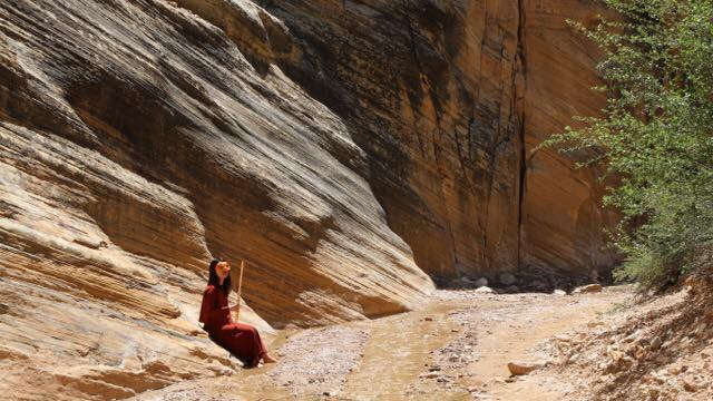 La légèreté est celle des oiseaux. Les chants d’oiseaux, ceux d’Olivier Messiaen, sont portés jusqu’à nous par la flûte de sa femme qui dans une vidéo qu’ils sont allés tourner dans l’Utah met en scène la rencontre entre sons de la flûte, improvisations et chants d’oiseaux habitant ce lieu d’un désertique qui évoque le monde d’avant l’homme.