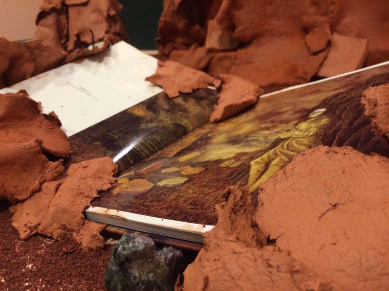 L’image de l’image de Remedios Varo, saisie au sens strict d’être prise dans le mouvement de la terre glaise perçue comme force en mouvement, coulée arrêtée au bord d’un vide métaphorique, sa présence donc au cœur de l’installation-sculpture, montre un personnage jouant de la flûte. Outre constituer une coïncidence de plus participant à la constellation signifiante en cours d’élaboration, cette image dit quelque chose du mystère et du miracle du son dans sa relation aux formes stables.