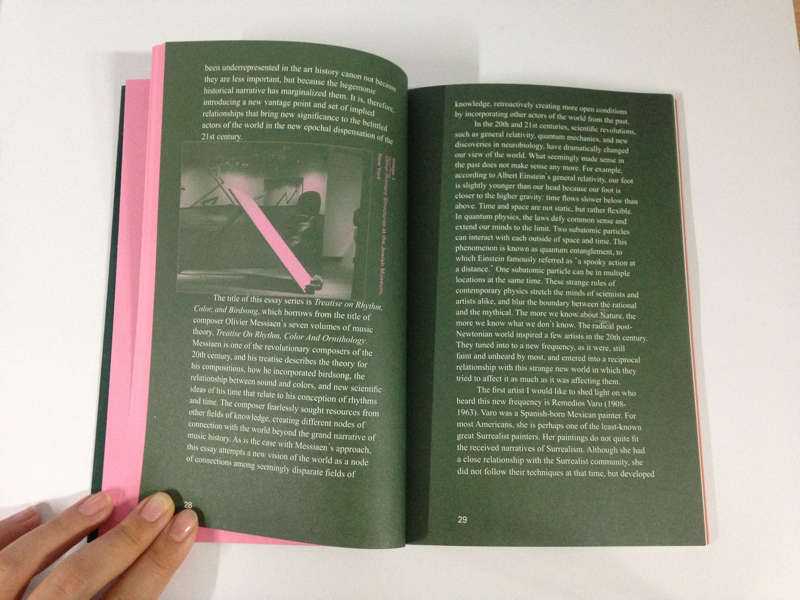 C’est bien ce que font les personnages de Remedios Varo, que mesurer cet interstice. C’est bien ce que fait Messiaen en jouant avec les chants d’oiseaux. C’est ce que fait Jaewook Lee en glissant entre ces deux versions complémentaires du monde, trop vite nommées l’ordre et le chaos, des formes fluides, des flux matérialisés des intentions sonores allégées et des expériences intellectuelles délivrées de la lourdeur psychique de devoir dire la vérité ou du devoir faire un objet ou du devoir s’appesantir sur sa propre lourdeur.