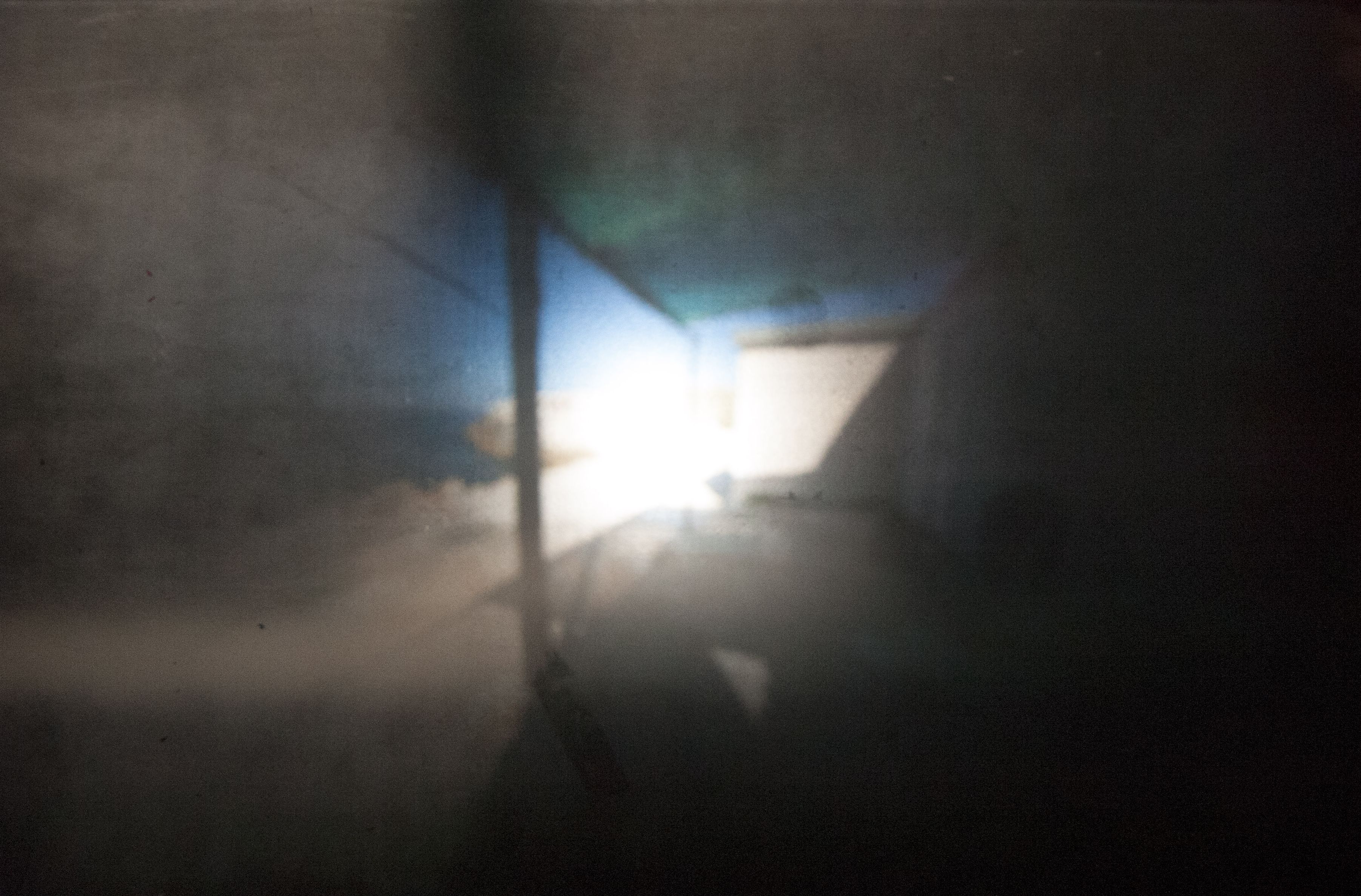 Après les photographies de repérage d’avril 2014, réalisées dans le cadre de sa résidence à La Chambre claire de Marseille, Yannick Vigouroux a photographié en septembre et octobre 2014 les cabanons des calanques marseillaises à l’aide d’une chambre sténopique.