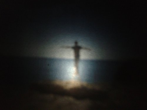 Un personnage passe. Il s’arrête. Le temps que s’affirment ses formes ; que se trempent ses couleurs. Un autre, les bras en croix, s’éloigne vers l’horizon. Ses pieds nimbés éraflent le ressac. Saisis dans un pas de danse entre les éléments, ils vibrionnent entre sable et mer. Le capteur enregistre le tressaillement. Leurs gestes ont le flou silencieux d’un temps-mouvement, d’un instant bougé qui s’accomplit. Un autre, se dégageant de l’ombre où s’accrochent encore ses pieds, se presse vers un cabanon à l’architecture cubique. Il se fige, le regard dévié. Le récit s’interrompt dans sa trajectoire. La séquence se donne à réinventer. Un autre encore, immobile une fraction de seconde, le temps de se faire silhouette d’ombre dense, à peine diversifiée, observe le dispositif, scrute le point d’inversion des rayons lumineux, imaginant peut-être qu’il est dehors et dedans, lui et image de lui, réfléchie et recalculée.