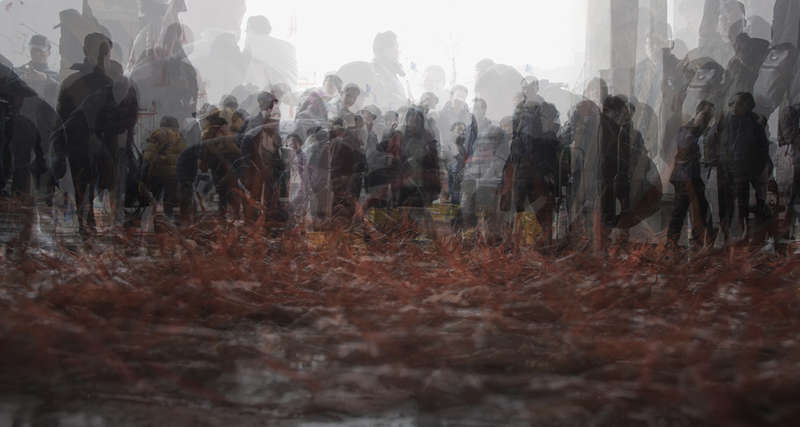 En effet, la superposition des huit clichés fait apparaître des focales et des profondeurs de champ différentes et confère à tous les corps présents, au-delà de la question de la netteté, une allure de fantômes.
