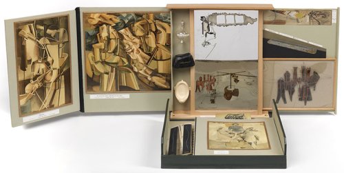 C’est en effet en pensant au risque de voir ses œuvres malgré tout se dissoudre dans le flux universel de la non-lisibilité que Duchamp finit par réaliser ses deux boîtes, La Boîte verte et La Boîte en valise dans lesquelles sont rassemblées ses œuvres, en miniature. Cette miniaturisation, n’est-ce pas encore un witz ? Et cette boîte comme espace de rassemblement, de recueil des œuvres anciennes, n’est-ce pas une forme de mathesis ?