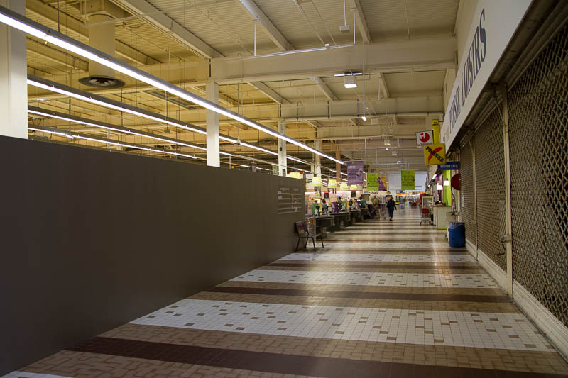 Aujourd’hui dans la partie généraliste les rayons sont à moitié vides, et dans la galerie marchande où les magasins ferment l’un après l’autre, pas assez dynamique, branché ou mal gérés.