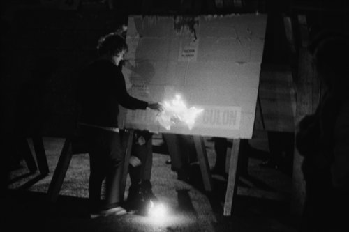 C’est durant cette nuit que je fus confronté, vraisemblablement à une "barbouze" armée d’un gros calibre qui démantelait une barricade élevée avec des panneaux électoraux à l’angle de la rue Saint-Jacques et du boulevard Saint-Germain. J’entends encore ce silence au cours duquel le déclenchement de l’appareil photo réglé au 1/15 seconde m’a semblé plus bruyant qu’un coup de cymbales. À moins de sept mètres de cet excité de la gâchette, il m’a semblé préférable de ne pas tenter un second déclenchement qui m’aurait peut-être évité de me retrouver dans le dilemme de Blow up !