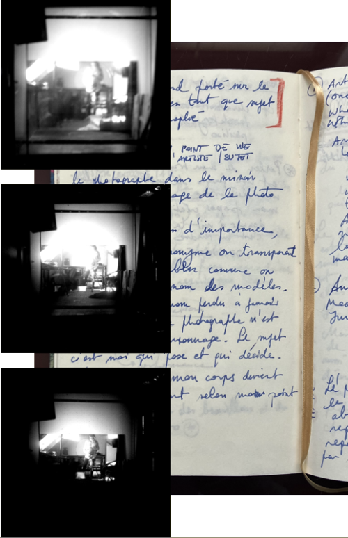Je construis donc ma propre mise en scène en prenant tour à tour la place de l’artiste et du modèle, du sujet qui fait l’action et du sujet regardé dans la photo. Je deviens œil, main, matériau, outil. Et je découvre que montrer les coulisses, c’est dévoiler l’envers du décor comme une tentative un peu insolente de revirement politique. Ce corps photographié fait la photo autant que la main qui pousse le déclencheur. Ce corps féminin qu’on traite d’objet n’est pas passif, mais bel et bien dans la fabrication de l’image. Cette femme-là qu’on regarde à satiété est le sujet de la photo.