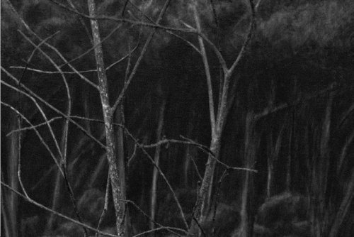5. Dans les paysages apparaissent des signes, des écritures peut-être, illisibles. On cherche à assembler les images, puis à les superposer, ce qui rend les compositions de plus en plus denses. Finalement le noir s’installe.