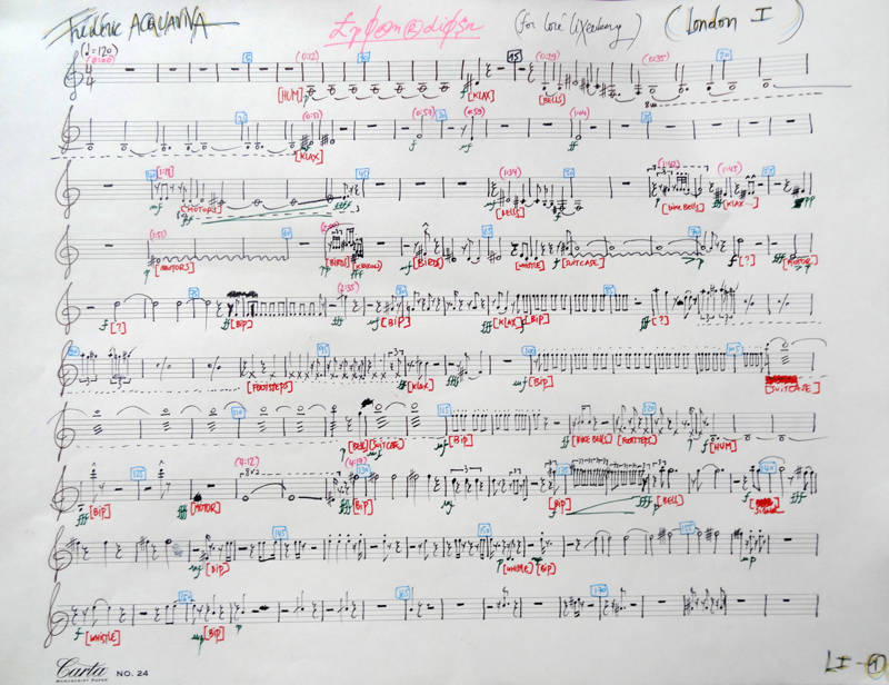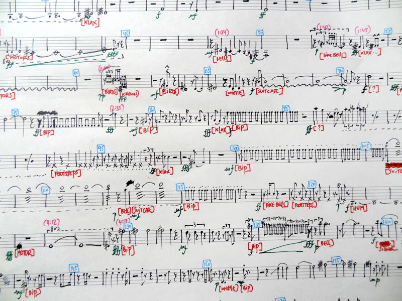 Après une phase de recomposition de ces trois séquences à Paris et trois séquences à Londres, j’ai retranscris ces sonorités choisies sur partition pour la voix de Loré Lixenberg. Ce qui fait que pendant la première partie de l’œuvre (les trois séquences enchaînées, du matin au soir), on entend les sons réels de Paris, tandis que Loré Lixenberg chante les sons de Londres, puis, à l’exact milieu, les rapports s’inversent et ce qui était chanté devient réel et le réel devient chanté.