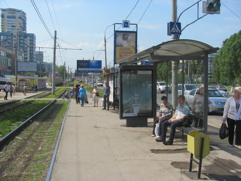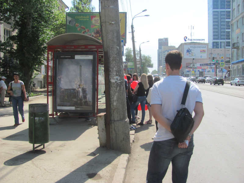 À Samara, Russie, des images qui ne sont pas des pubs mais des œuvres se tiennent droites dans les abribus et font des clins d’œil aux passants.