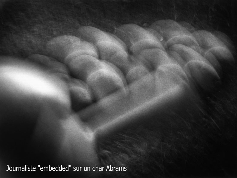 L’absence de photographies ou de films pendant la guerre du Golfe, puis l’Afghanistan et l’Irak, m’a véritablement troublé, et cette terrible actualité se déversant uniquement en paroles, il manquait une dimension : sans les images, pas de traces imprimées dans le cerveau. Il m’a fallu intervenir et rétablir l’équilibre en créant mes images personnelles.