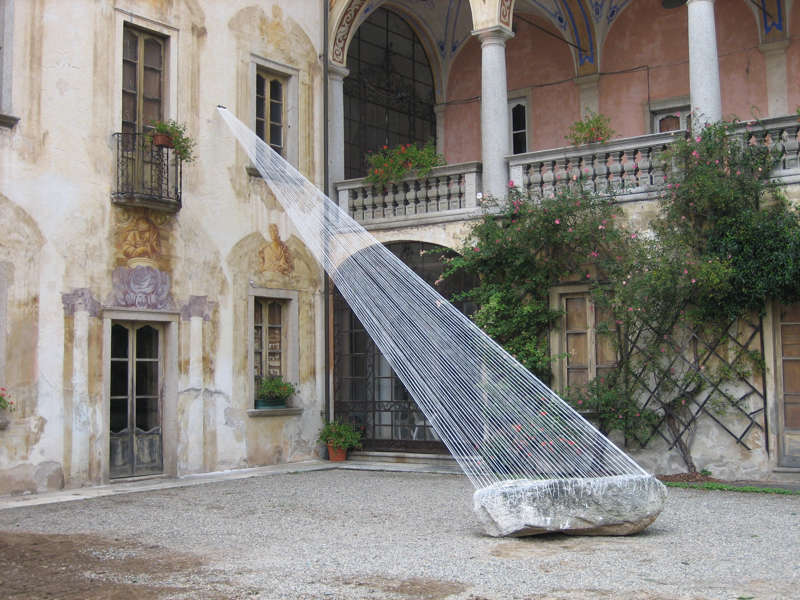 Dans ‘La soluzione lirica’, 1991, il s’amuse avec la fameuse tour penchée de Pise en créant ainsi un « penchant » tout droit en verticalité soutenue par des milliers de fils comme pour jouer de la stabilité penchée de la Tour.