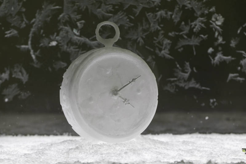 En japonais, le mot hakanai (éphémère) est souvent défini comme fugace, incertain, fragile. Mais est-ce sa seule signification, se demande l’artiste. Pour elle, être éphémère ne veut pas simplement dire « voué à la disparition », mais plutôt « contraint à l’évolution ». La notion porte en elle une forme de résilience, une « force discrète mais essentielle ». Dans l’œuvre d’Aiko Miyanaga, le temps ne s’arrête jamais. À peine une paire de chaussures en naphtaline sort-elle du four qu’elle débute sa métamorphose. Face à cette cristallisation incertaine, notre imagination s’envole, s’aventure dans un voyage temporel. « Contrairement aux aiguilles d’une horloge qui n’avancent que dans une seule direction, notre perception du temps est fluide, multidimensionnelle. » Pour l’artiste, le présent est « l’instant où nous posons notre regard, où nous prenons conscience du moment. C’est dans cette interaction que le présent se définit ».