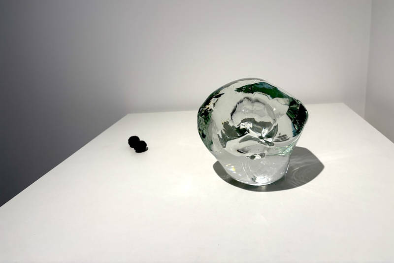 Dans son travail, cette notion est étroitement liée aux matériaux employés. Le verre, par exemple, résulte d’un processus de fusion et de solidification qui rappelle le passage d’un état à un autre. De même, l’utilisation de la naphtaline induit une transformation de l’œuvre, même si personne ne sait ni quand elle aura lieu, ni quel en sera le résultat. Chaque œuvre accueille tout changement non comme une disparition mais comme une suite logique, une continuité inattendue. Leçon apprise, sûrement, en observant la nature et ses transformations incessantes. Cette nature que l’artiste définit comme un « guide silencieux qui nous montre différentes façons d’exister ». Mais qui pose également la question de sa limite. Où commence-t-elle ? Où s’arrête-t-elle ? Ce que la main humaine fabrique en est-il exclu ? « Cette frontière mouvante entre le naturel et l’artificiel est une réflexion constante dans mon travail. »