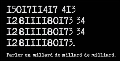 Il n’y a rien d’anodin, plutôt un fil pétillant qui navigue de bâbord à tribord : Wo bist du, wenn du bist wo du bist ? [5] Tu tues tu, S’attaquer aux montagnes, Chanson de toiles, A deux, Mou mais pas humide. Faut-il ajouter à cela quelques traductions des petits rubans de chiffres par exemple : 94 21841318 3’ 2013 1502418 3819 34214111415154, 21420154 320 28411 419 34 110 19417174 qui donnerait : Je viens d’un pays dit développé coupé du ciel et de la terre ou bien encore : 94 18202818 3421013(19), 02142 419 301318 19413 52018811, 94 1820818 110 214381981413 34 190 620 417174. 1920 314818 508174 02142 12418. Je suis devant, avec et dans ton fusil, je suis la condition de ta guerre – (tu dois faire avec moi). .... Vous comprenez ?