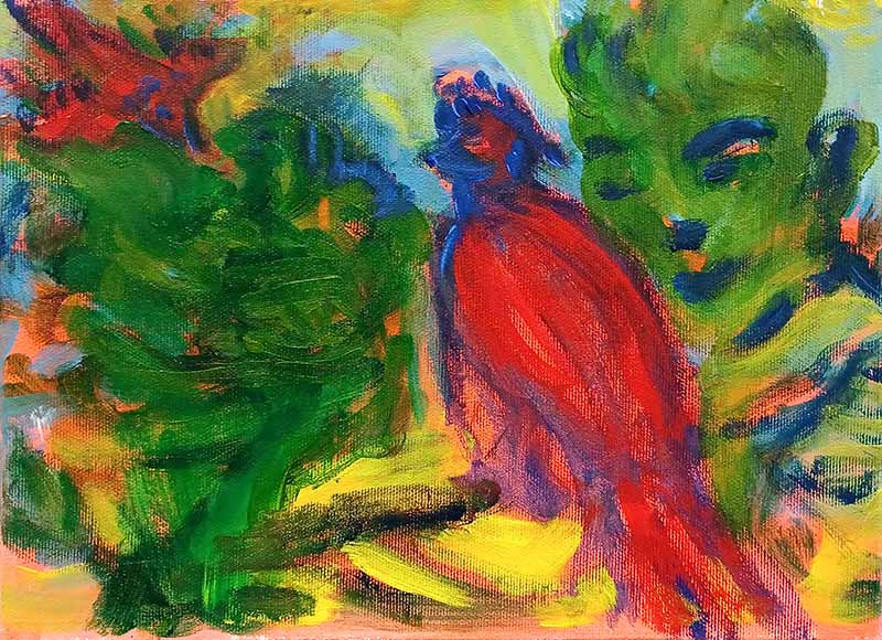 Comme le dirait Baudelaire, “la nature est son temple”, celui où mille figures de métaphores dansent, jouent et se métamorphosent, baignées dans les tons si particuliers de sa palette et font de son œuvre une élégie joyeuse.