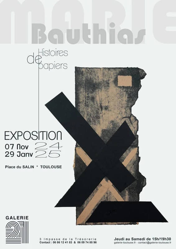 Les histoires de papier de Marie Bauthias entraînent en particulier des voyages. Entre autres reprises sur fond blanc elle met en exergue des supports utilitaires renvoyant autant aux carrés blancs de Malevitch qu’aux astuces de l’ancien mouvement « supports-surfaces ».