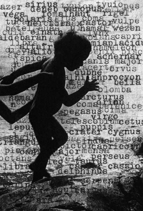 À supposer que la Terre ne soit pas aussi plate qu’une image et que nous ne soyons que poussières d’étoiles, la série « Bruit de fond » convoque, à sa manière, mon histoire personnelle intimement liée à celle du siècle passé, point asymptotique de fusion entre la petite et la grande histoire immobilisée dans le grain de la matière argentique. Mes proches y figurent, la mère, mes enfants, comme tatoués par les miettes de texte dactylographiés qui convoquent d’autres événements qui ont marqué ce temps auquel j’appartiens. Pour ne pas oublier, en effet.