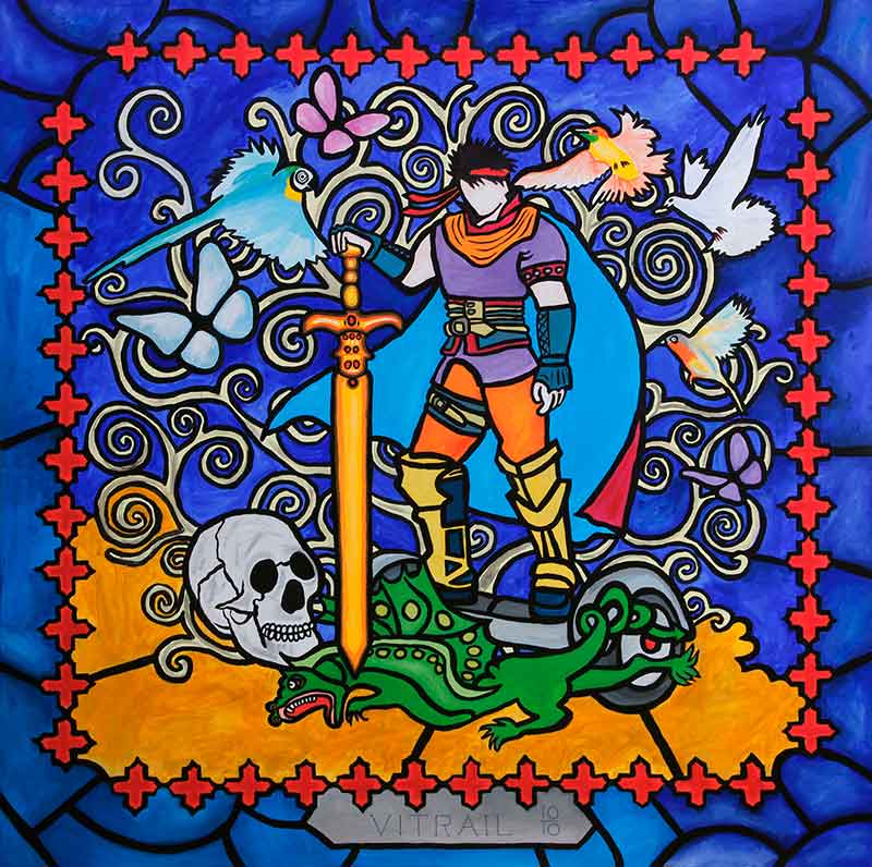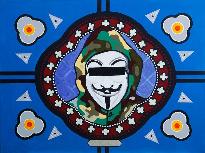 Par cette suite picturale représentant l’esprit mystérieux des vitraux, les artistes interprètent de manière éminemment contemporaine la mythologie esthétique déclinée dans les enclaves où se loge les arcanes du religieux.