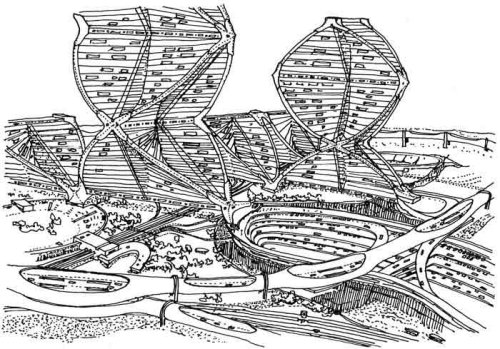 « Les hybridations / proximités / frictions / chevauchements / superpositions de programmes qui sont possibles dans la Bigness – et en fait l’appareil complet de montage inventé au début du siècle pour organiser les relations entre des parties indépendantes — sont en train d’être défaits par une section de l’avant-garde du moment, dans des compositions d’une pédanterie et d’une rigidité presque risibles, malgré leur apparence sauvage. » (op. cit., p.36)