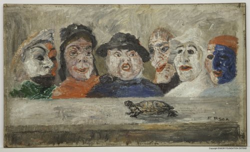 Voir des œuvres d’Ensor et de Kluge, c’est retrouver, dans le brouillard artificiel mais si prégnant dont nous enveloppe cette crise sans fin, un peu de visibilité. Ce que l’on voit est moins un chemin qu’une ouverture portant sur ce brouillard même. Voir le brouillard comme un théâtre d’ombre, c’est comme voir les masques. C’est aussi faire l’expérience à la fois du fond ancien qui couve en nous et que le grotesque ranime et d’une sortie du piège mental que nous impose cette crise sans fin.