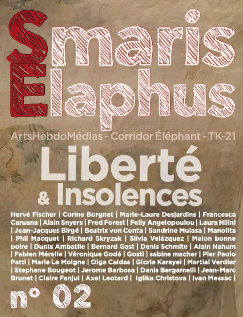 Le n°02 de SMARIS ÉLAPHUS**, revue annuelle réalisée par trois revues en ligne (Arts Hebdo Médias, TK-21 LaRevue, Corridor Éléphant). Revue expérimentale, elle ouvre ses pages une fois par an pour proposer à des artistes contemporains et des auteurs de s’exprimer sur un thème choisi.